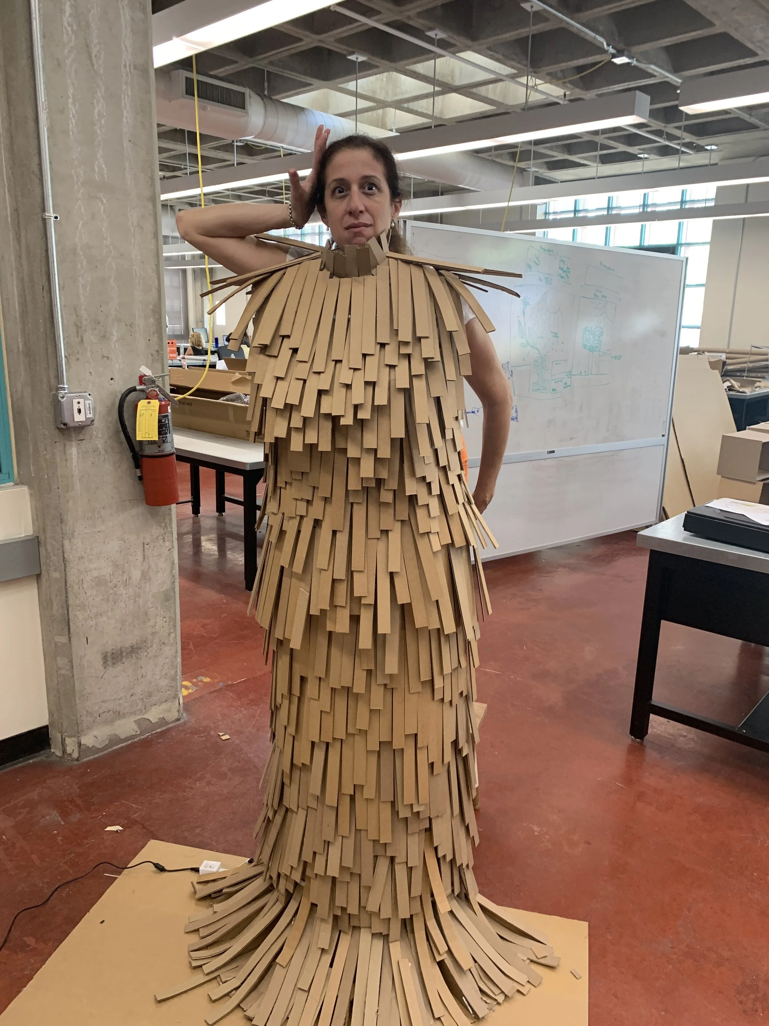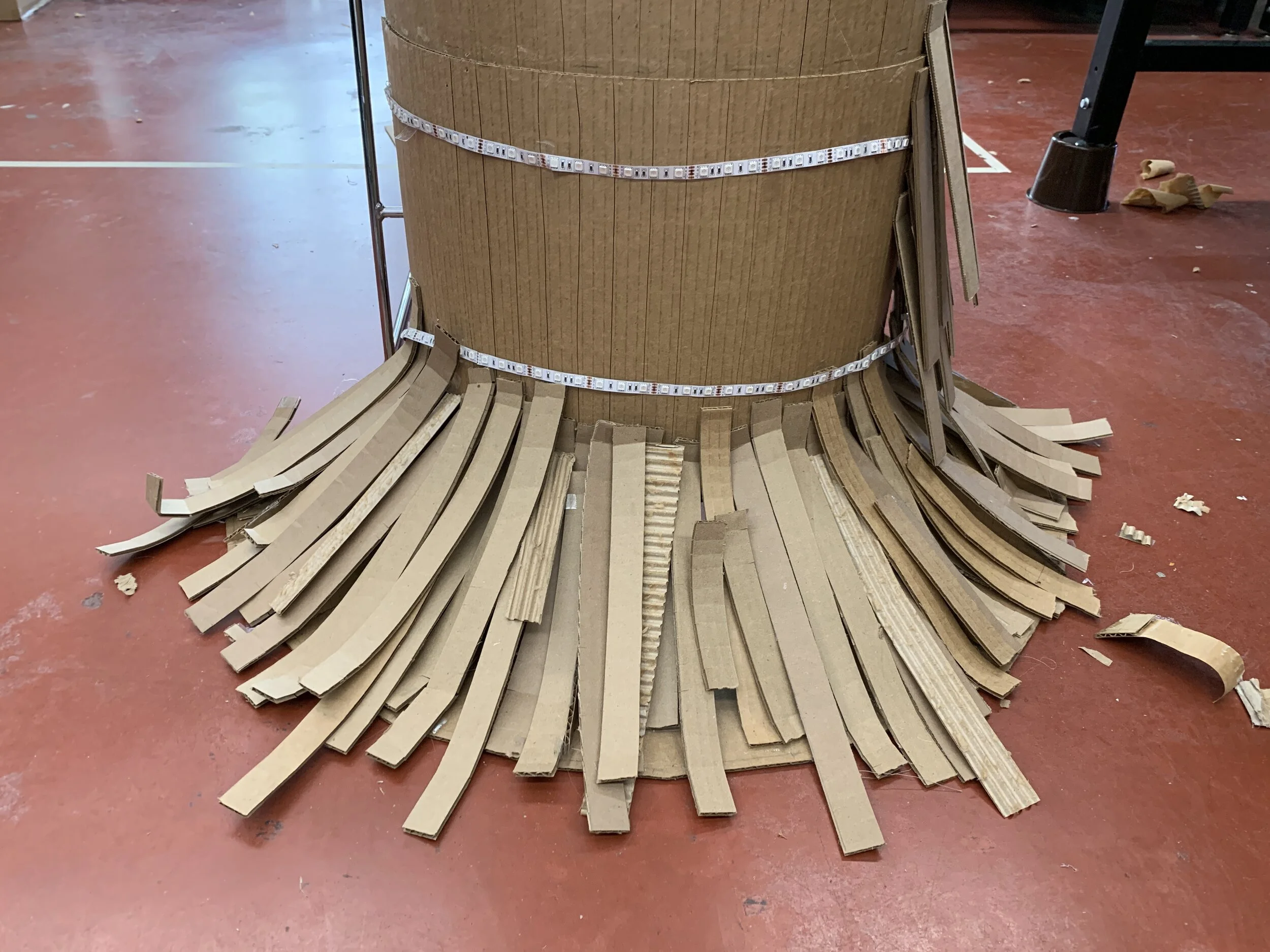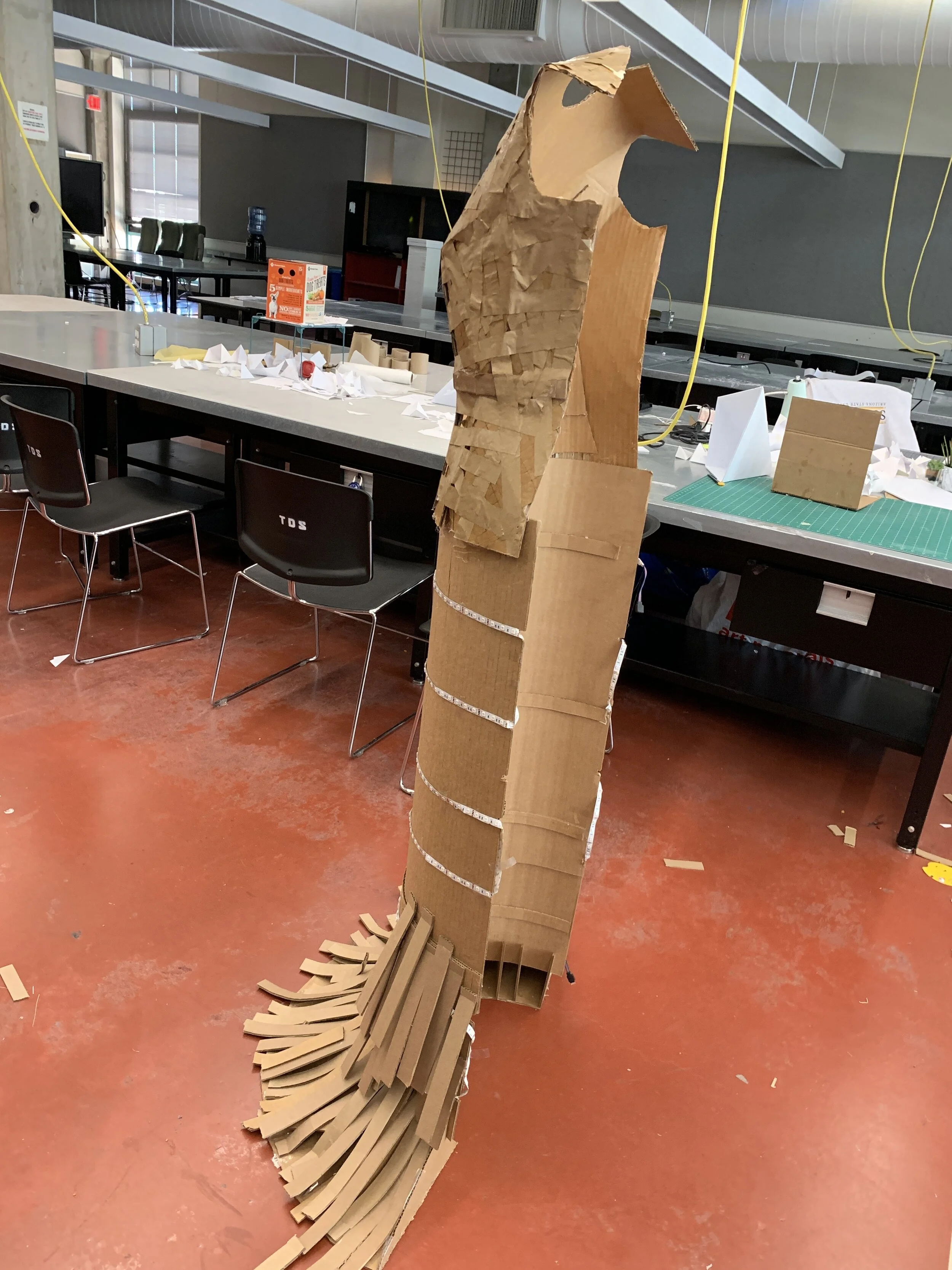 I challenged myself to push the limits of the assigned material (cardboard). I wanted to make something that didn’t look like cardboard but instead was light and airy. Taking advantage of cardboard’s ability to be laser cut allowed new forms, as well as the opportunity to play with light.